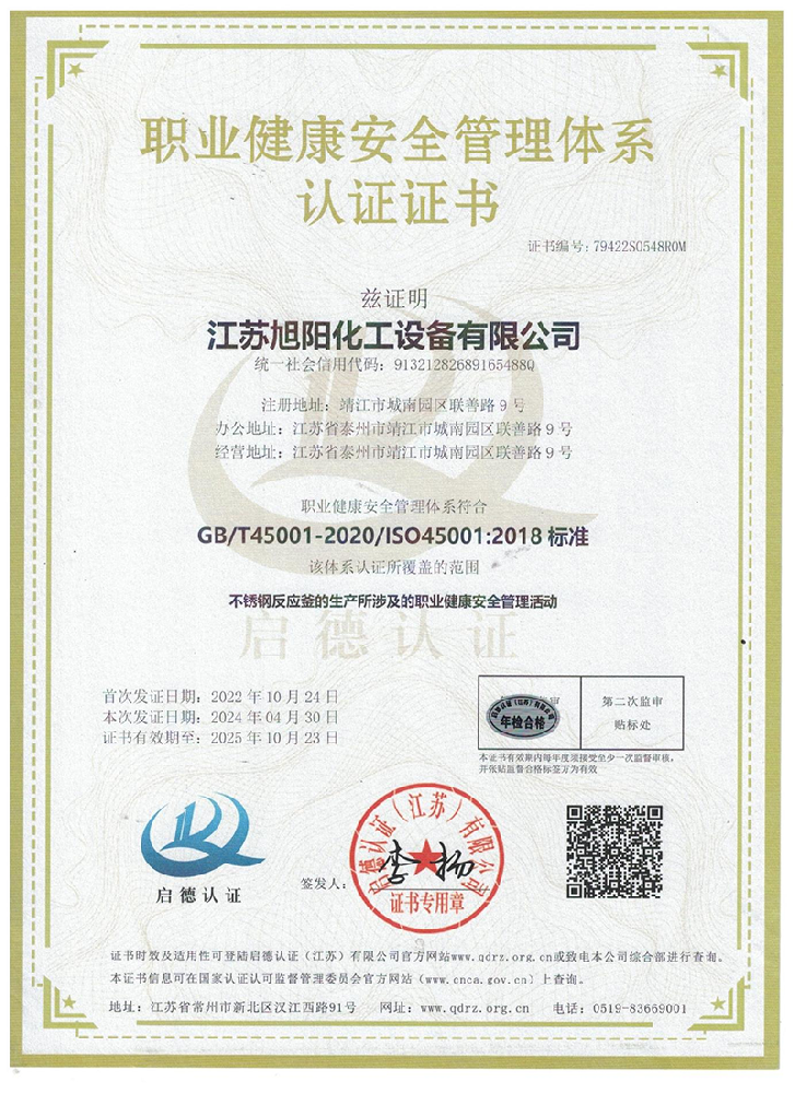 Jiangsu Xuyang Chemical Equipment Co., Ltd. is a high-tech enterprise integrating research and development, production and import and export trade, specializing in the design and manufacture of various chemical, environmental protection, pharmaceutical, fermentation, food, new materials, lithium and other projects and the manufacture of pressure vessels.